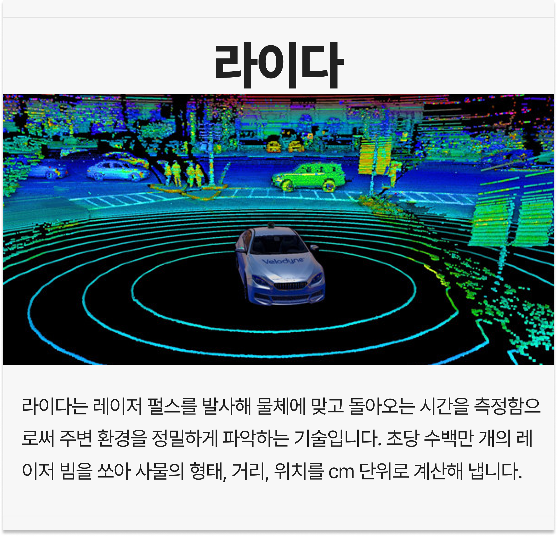 ์ ์์ ์๋ฆฌ: ๋ผ์ด๋ค๋ ๋ ์ด์ ํ์ค๋ฅผ ๋ฐ์ฌํด ๋ฌผ์ฒด์ ๋ง๊ณ ๋์์ค๋ ์๊ฐ์ ์ธก์ ํจ์ผ๋ก์จ ์ฃผ๋ณ ํ๊ฒฝ์ ์ ๋ฐํ๊ฒ ํ์